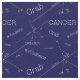Um padrão uniforme de Cancer de constelação Zodiac ou caranguejo. Acubens é a estrela principal ou alfa da constelação. As cores das estrelas são quase reais. Para qualquer nascer entre 22 de junho e 22 de julho. Um tipo, design único. Tecido elegante para qualquer um. Se você clicar no botão "Editar Design" ou "Personalizar" (conforme o caso), você terá a oportunidade de alterar a cor do plano de fundo, o tamanho e o padrão do azulejo e até adicionar seu próprio texto. Felizes feriados e olhem para as estrelas!
