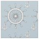 O leme da nave branca no centro com âncoras e cordas nos cantos superior direito e inferior esquerdo. O fundo azul médio pode ser personalizado.