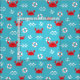 Uma mascote feliz do caranguejo com olhos grandes. Está levantando com suas garras grandes acima no ar, mas é muito amigável e bonito.