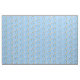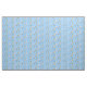 Caráteres de mágico de Oz no tecido azul e branco do guingão. Os padrões incluem Dorothy, Toto, homem da lata, espantalho, leão Cowardly, Glinda a bons bruxa, arco-íris, nuvem, balão e guarda-chuva.