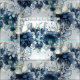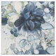 Marinho, cor azul e branca, pintada de água, com florais azuis empoeirados e verde prateado de eucalipto, em padrão repetido.