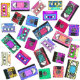 Estes anos 80 colorido brilhante de néon e padrões legal e retros da reminiscência dos anos 90 em cassetes de banda magnética são perfeitos para o indivíduo na moda e à moda. Seus divertimento e impressão brincalhão são grandes para muitos presentes e ocasiões. Aprecie este design engraçado e elegante para sua compra seguinte; para o senhor mesmo, seus amigos, ou sua família.