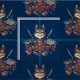 Tecido Cat Samurai Warrior Japonês