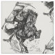 Cavaleiro do Grande Ceifão segurando uma cicatriz e sentando em cavalo. Cavaleiro escuro da morte. Cavalo na galope.Ilustração