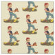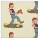 Reacenda as memórias da infância e passe-as avante aos jovens com este tecido que caracteriza um rapaz novo que monta seu cavalo do passatempo ao fingir ser o herói de sua própria história. Isto é ideal para que muitos projetos diferentes do artesanato iluminem os quartos ou as salas de jogos das crianças.