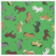 Tecido Cavalos de Cartoon Bonitos Crianças Verde