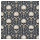 Os crânios estão cercados por um motivo floral azul estilizado neste tecido maravilhosamente Gótico. Perfeito para roupas e colchas, para quem caminha do lado negro.