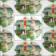 Um dia na praia cem anos há com as jovens senhoras no roupa de banho do vintage que espirra no surf junto com um cão de estimação é caracterizado neste design. Inspirará uma variedade infinita de projetos para lembrar um dos dias de verão felizes passados na praia ou nos tempos que cavorting nas ilhas.