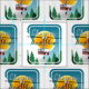 Esta design é uma ilustração de um carro a cabo que leva o pessoas para o Monte Branco. Ao fundo, alguém esquiando o cobrir de neve... desliza em direção a uma floresta. O texto diz Chamonix-Mont-Blanc.