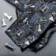 Tecido Chess Termos e Peças Prateadas e Azul ID784