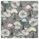 Minhas ilustrações vetoriais originais de cogumelos e samambaias inspiradas pelas anos 50 atômicas; em preto, marfim, goldenardo pálido, aqua pastel, rosa, verde e amarelo, em cinzas texturizadas. ©Christine Duffield