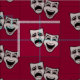 Ilustração de máscaras teatrais gregas mostrando tragédia e comédia, padrão repetido, cor de fundo personalizável