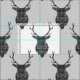 Tecido Cinza Tartan Stag Head Antler Rustic Patterno