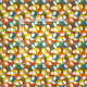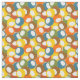 Este tecido tem um design moderno século médio de círculos em azul, verde, castanho, siena, amarela e laranja com ovais brancos dentro.