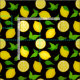 Traga o verão para a sua vida com este design de tecidos de citros artesanal. Apresenta limões amarelos com folhas verdes sobre fundo preto. design original por Design de Mouse Cute.