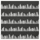 Um desenho de uma linha do horizonte da cidade forma listras pálidas ininterruptas contra um céu noturno preto. Os prédios e arranha-céus são desenhados em branco e preto translúcido, então se você mudar a cor de fundo, a cor da cidade mudará para complementá-la. Esse seria um bom padrão de colcha, máscaras e outros projetos de artesanato. A cidade poderia ser cortada em faixas para fronteiras.