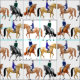 O teste padrão original da arte do achado de cavalos e de cavaleiros clássicos do adestramento pelo artista eqüino e pelo desenhista Carolyn McFann do estúdio de ronrom de dois gatos imprimiu no tecido de algodão da qualidade para aficionados desportivos equestres.