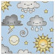 Este padrão de tecido inclui uma variedade de ícones de tempo bonitinhos com rostos sorridentes ou telhados no estilo kawaii: um sol, lua, nuvem branca, nuvem de chuva, nuvem de neve, nuvem de trovoada relâmpago e estrelas. Perfeito para entusiastas do tempo, meteorologistas, caçadores de tempestades e cientistas do clima!