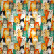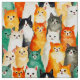 Uma colagem de gatos em vários tons de laranja, branco, cinza, bege, preto e branco. Cada gato tem uma expressão distinta, que vai do curioso ao conteúdo. O estilo de aquarela e a repetição criam um padrão animado e lúdico.