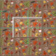 Tecido gráfico moderno do tema colheita do outono sobre fundo castanho quente. Ideal para fazer lindas roupas de casa suaves a tempo das comemorações de Ação de Graças.