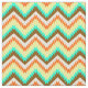 Um padrão colorido de fevron em linhas de zague, apresenta formas e linhas de diamante em aqua, marrom, laranja, creme e branco. Este bonito tecido de fenda seria excelente para projetos de artesanato e para projetos têxteis.