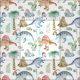 Tecido com dinossauros aquosos para crianças. Padrão adorável em fundo branco.