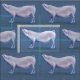 Porco rosa e bonito com orelhas grandes sobre seu tecido com padrão de olhos. Ideal para colagem e outros projetos de costura. Desenho e design por Sarah Trett.