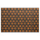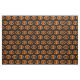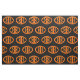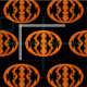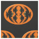 Este tecido artesanato incrível é perfeito para todos os seus projetos de artesanato. O design apresenta um oval laranja com seis corvos. Cada corvo tem olhos amarelos com pupilas pretas e asas salientes. Os corvos voam em direção uns aos outros formando uma forma oval. O fundo é preto.