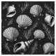 Tecido Conchas e algas marinhas a preto e branco