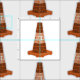 E ilustração de um cone de estrada, com uma descrição tipográfica de muitos dos diferentes nomes usados para esses cones. Isso inclui canalização de cone, cone de construção, cone de estradas, autoestrada, chapéu de bruxas de cone, cone de caução e pilão.