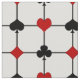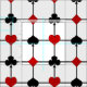 Este tecido apresenta um tema original de design com placa inspirado em Art Deco, composto por símbolos brilhantes de traje vermelho e preto (diamante, clube, coração e espada) centrados onde as linhas preto espesso e fino horizontal e vertical de uma grade se encontram, com um grande campo de texto personalizado para o seu monograma no centro.