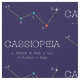 A constelação norte das estrelas Cassiopeia. A cor das estrelas é quase real. Nomes de objetos de estrelas e espaço. Um tecido único ao estilo astronômico para o seu projeto criativo. Não se esqueça de usar o botão PERSONALIZAR TI para alterar a cor do plano de fundo, ajustar a imagem no produto, realocá-la ou adicionar algum texto a ela. Comprar um, divirta-se e seja feliz.