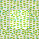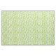Este tecido tem um design moderno do século Médio de semicírculos verdes que se parecem com copos amarrados com estornamentos de tartaruga e retângulos.
