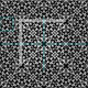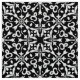 Design Elegante com um padrão uniforme feito de ornamentos brancos sobre fundo preto.