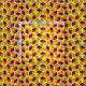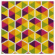 Um padrão geométrico formado por seis hexágonos laterais dividido por um estreito espaço branco cada um dividido em seis segmentos de cor em cinco cores harmoniosas. Cada hexágono horizontal é rodado sistematicamente 60 graus até o vizinho mais próximo criando um padrão bem variado.