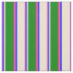 Este design apresenta um padrão listrado cor-de-rosa, azul, bege, verde e cor-de-rosa profundo.