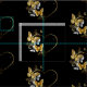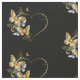 Dourada estrutura em forma de coração, decorada com ouro, joias e borboletas brancas sobre fundo preto.