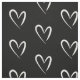Design moderno e na moda com design de tecido com padrão de corações brancos colocado sobre fundo preto. Perfeito para projetos de artesanato, moda, decoração doméstica, como cobrir de edredão e travesseiros, cortinas e muito mais. Design por Inge Lewis. Localize mais itens correspondentes na loja ingeinc.com.