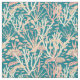 Legal tecido azul-lacre impresso com um padrão contemporâneo de recife de coral submarino em cores rosa e coral.