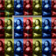 A obra-prima de da Vinci cronometra três (x3), grupo fora nas cores preliminares do vermelho, amarelo e azul.