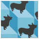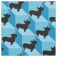 Este é um padrão divertido com uma silhueta Pembroke Welsh Corgi em vários tons de azul. Os padrões escuros e claros fazem uma ilusão ótica de profundidade.