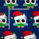 Este tecido de Natal de coruja fofa apresenta um pássaro adorável com olhos bonito de kawaii em um padrão legal. Esta coruja de férias divertida está vestindo um chapéu de Papai Noel.