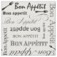 Teste padrão preto e branco elegante que caracteriza uma repetição das palavras "Bon Appetit" em francês.