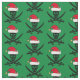 Legal tecido de crânios de Natal com um padrão de feriado verde de um crânio vestindo um chapéu vermelho de Papai Noel. Eu gosto deste lindo presente de esqueleto de Natal.