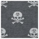 Crânio e crossbones do símbolo do Biohazard com um fundo cinzento da parede de tijolo.