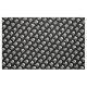 O crânio preto e branco e os crossbones do símbolo do biohazard modelam o tecido.