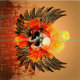 Crânio impressionante com rosas e as asas maravilhosos crânio, cabeça, esqueleto, ossos, rosas, flor, flor, crescendo, asas, cruzes, assustadores,