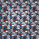 Os crânios brancos estão aninhados entre flores vermelhas e brancas com sotaques azuis neste maravilhoso tecido de fantasia. Perfeito para aqueles que abraçam o Gótico, mas se sentem como cores mais claras e brilhantes.
