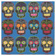 Tecido de crânios de açúcar preto. A cor de fundo pode ser personalizada.