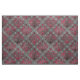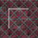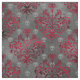 designs vermelhos de damascos florais são cercados por pequenos crânios brancos abstratos em um fazer de fundo de cinza este é um design elegante, mas assustador, inspirado no Halloween.